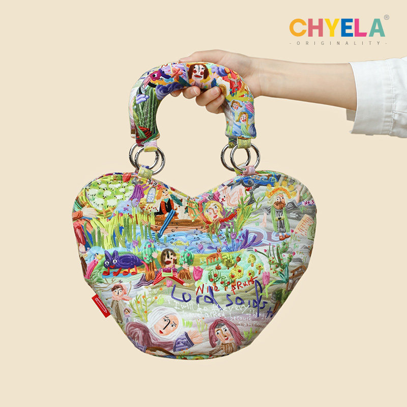 采绎来xCICI《理想国》四部曲帆布包爱心手拎包个性斜挎书包QT317