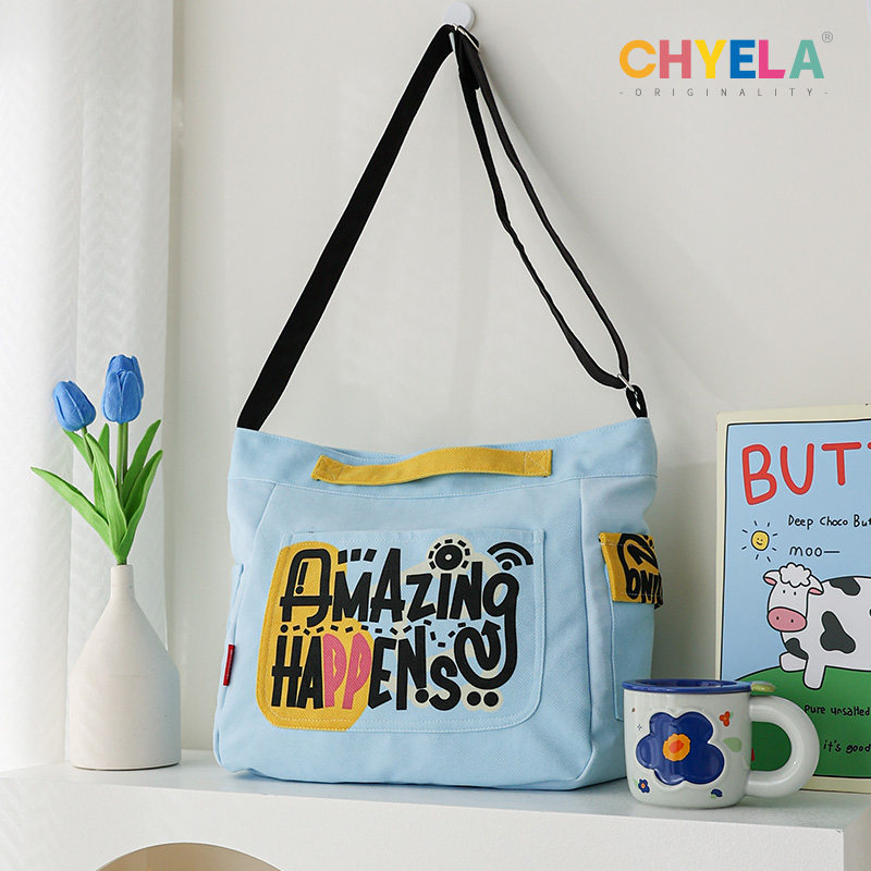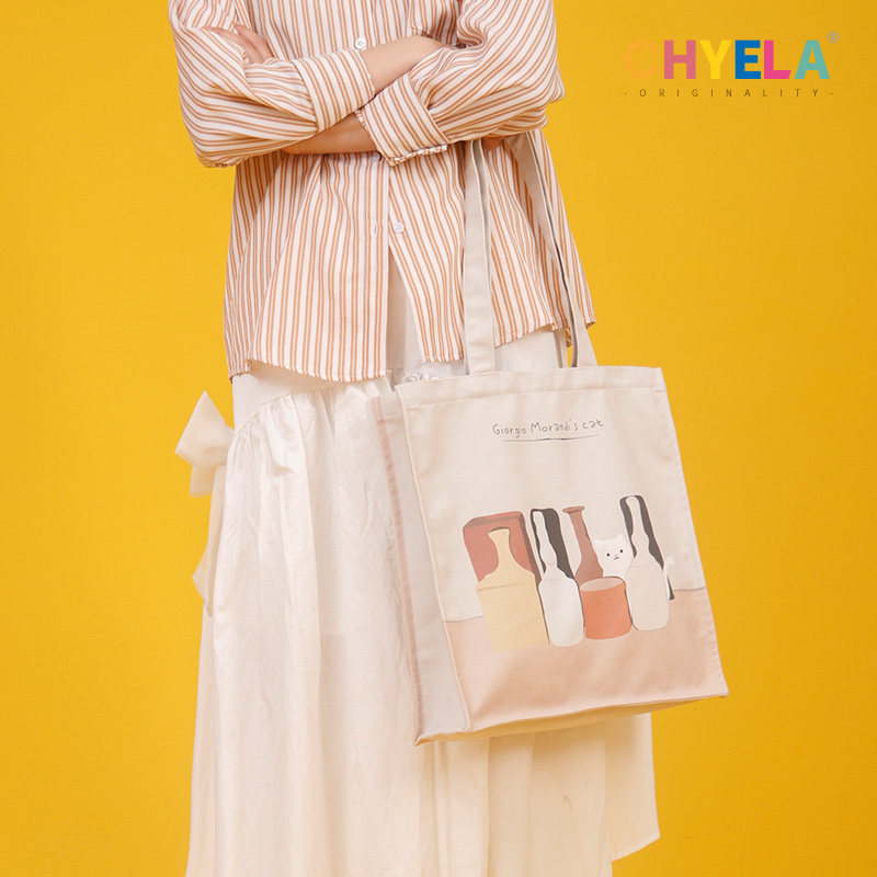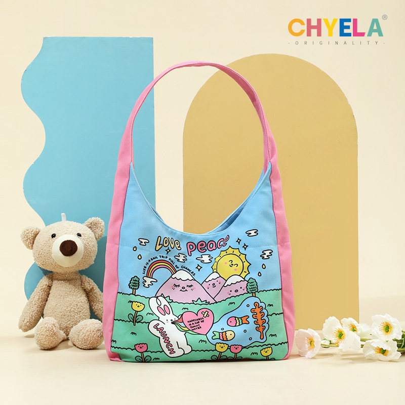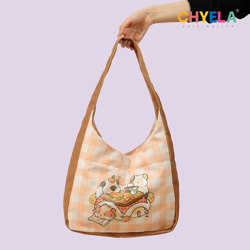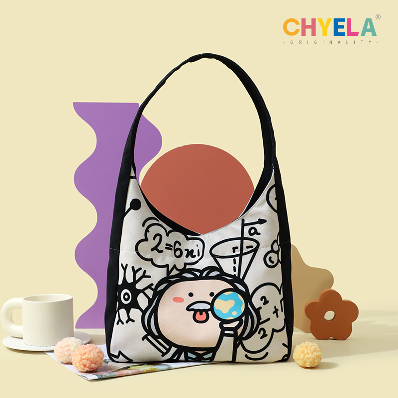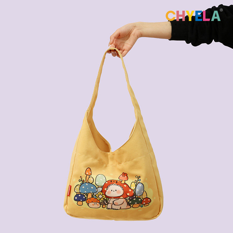 插画师原创单肩帆布包女学生大容量托特包卡通可爱通勤手提包AM25