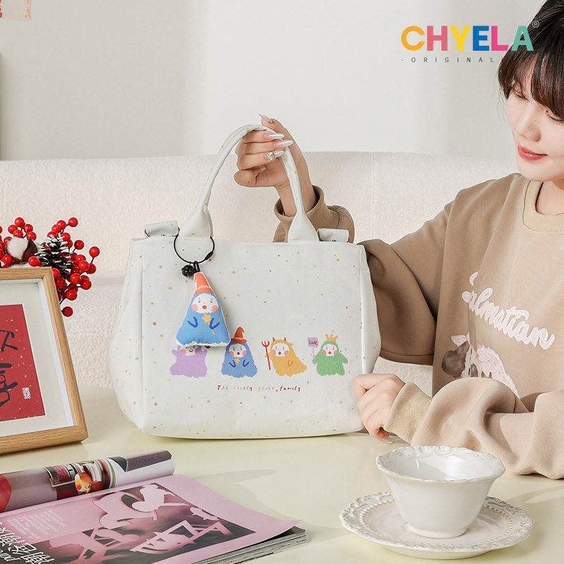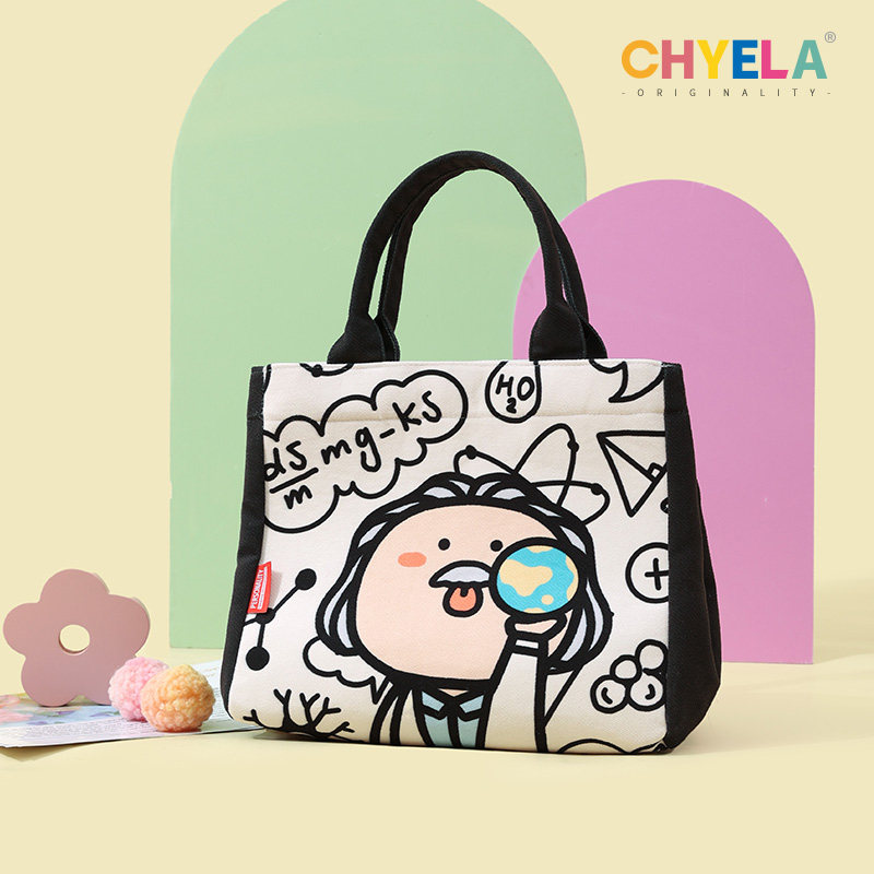采绎来X臭臭的蛋可爱手绘水桶包巢流手提包帆布袋手拎便当袋QT298