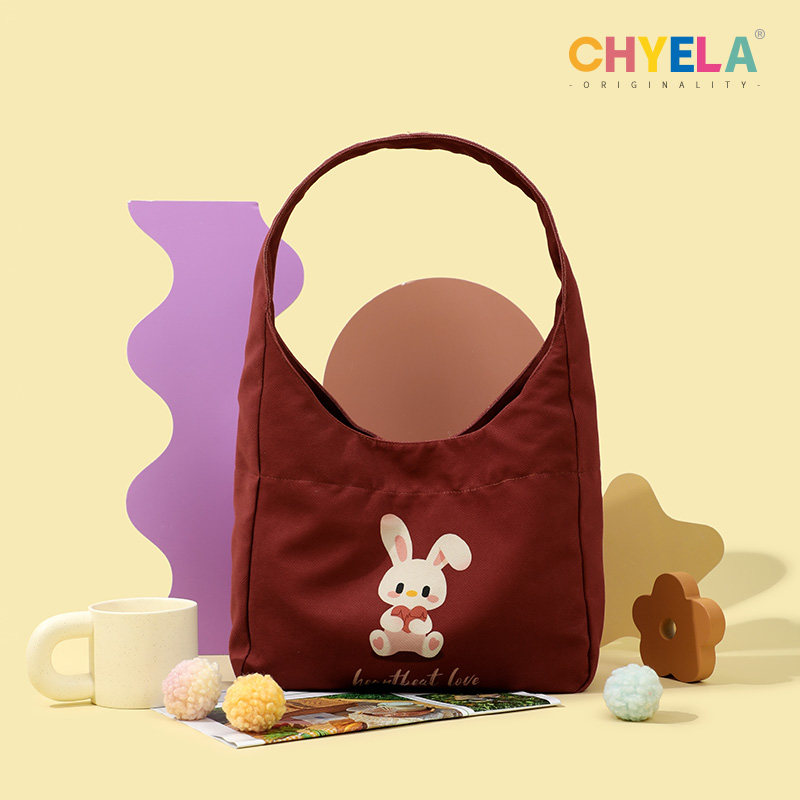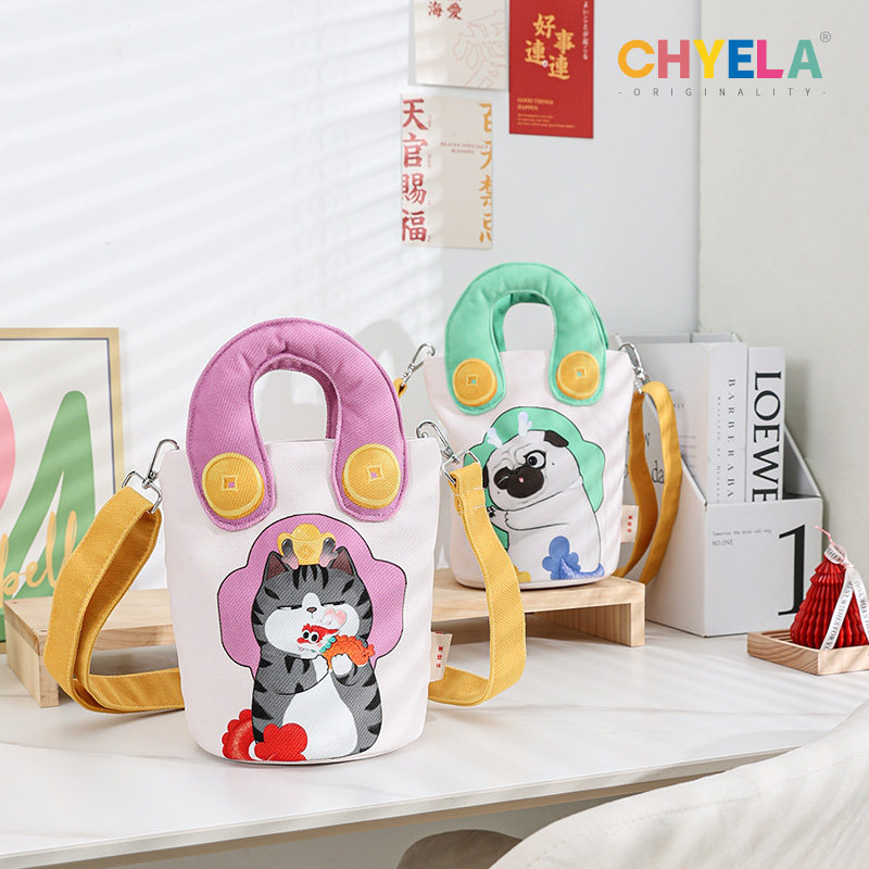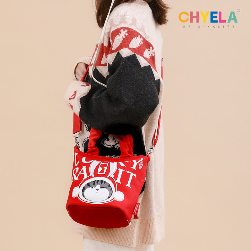 兔年原创新款可爱插画单肩斜挎水桶帆布包女定制礼品手提袋AS232
