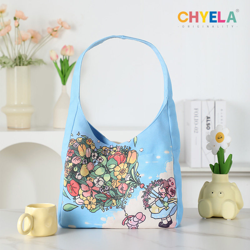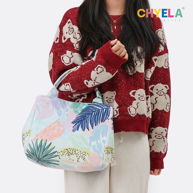 采绎来x星野咩咩子花花印花可爱大容量帆布购物袋手提单肩包QT389