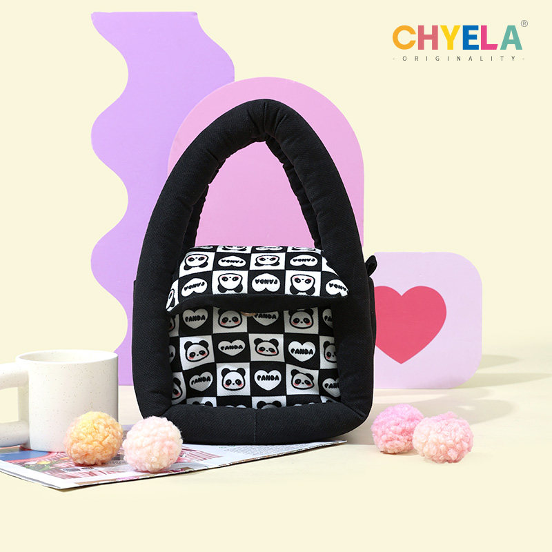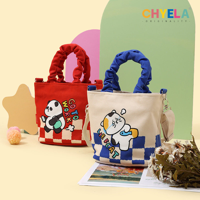 设计师原创可爱熊猫插画水桶包小众个性手拎斜跨包女帆布袋AS227