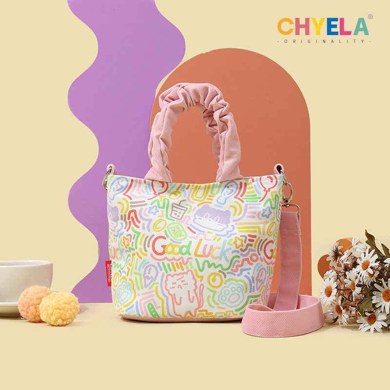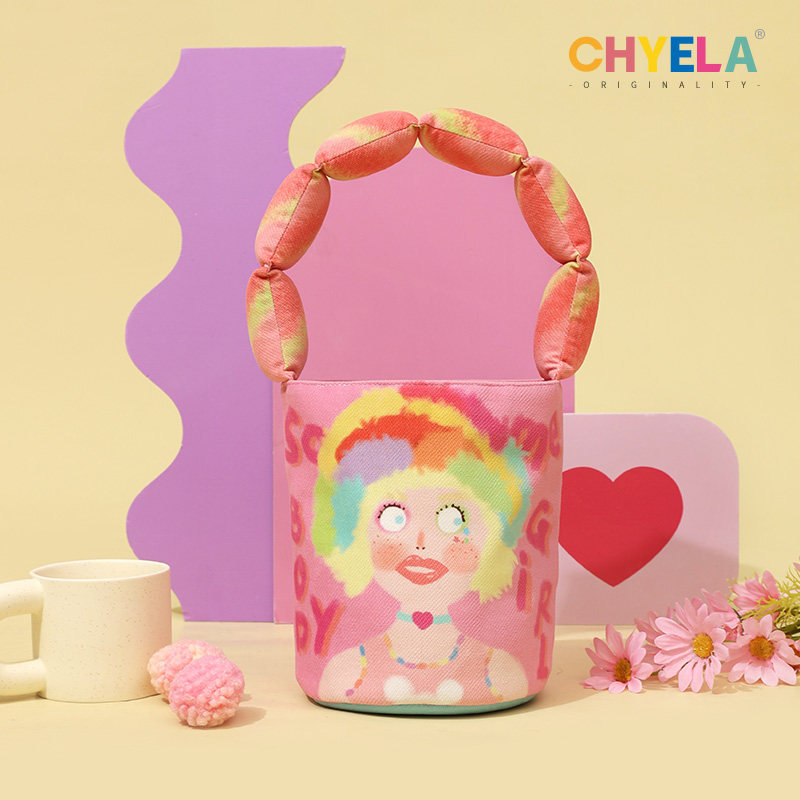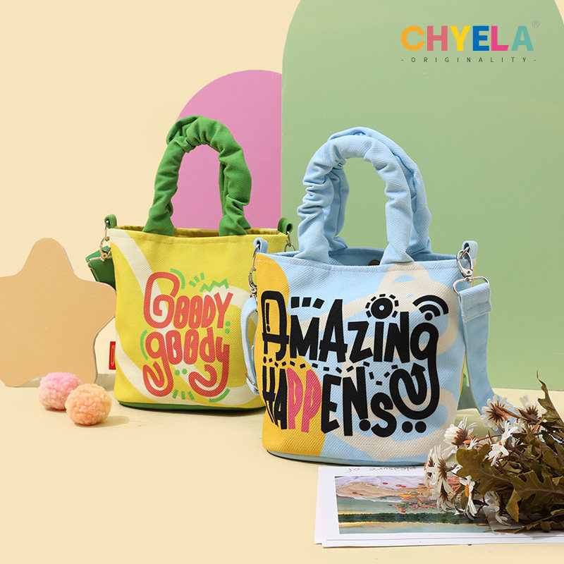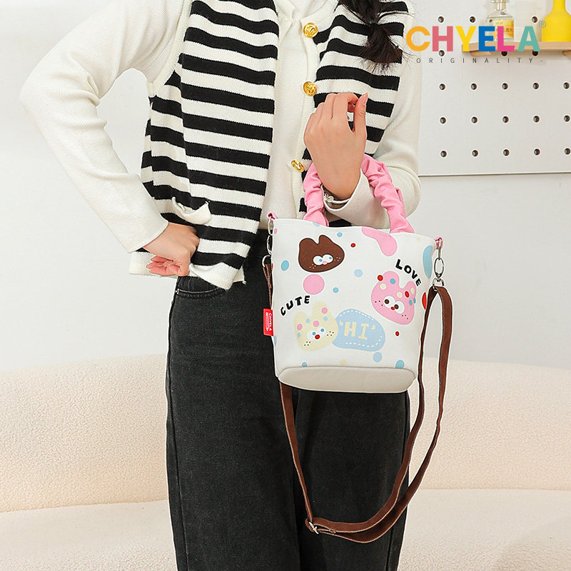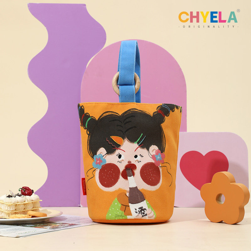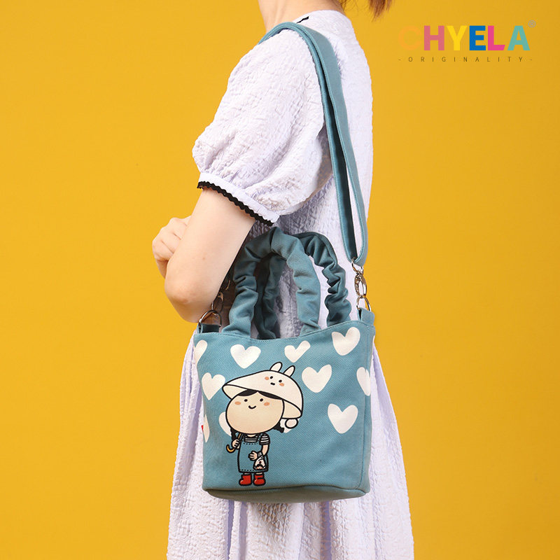 小蔻卡通可爱手提水桶包2022新款帆布包包单肩斜跨包便当包QT154