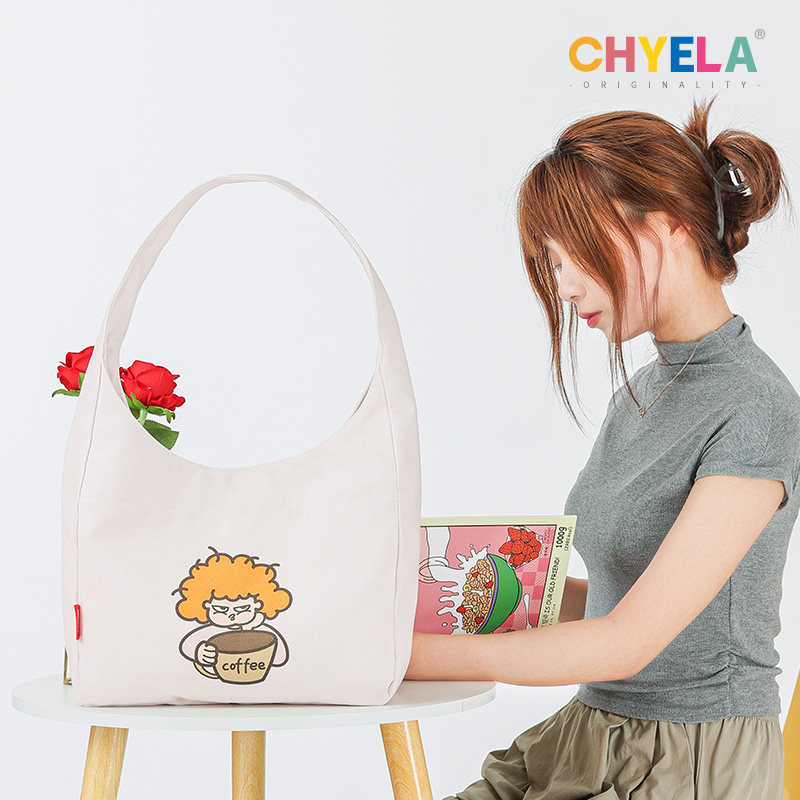 小蔻原创可爱插画通勤包女斜挎包大容量单肩手提帆布包包潮QT213
