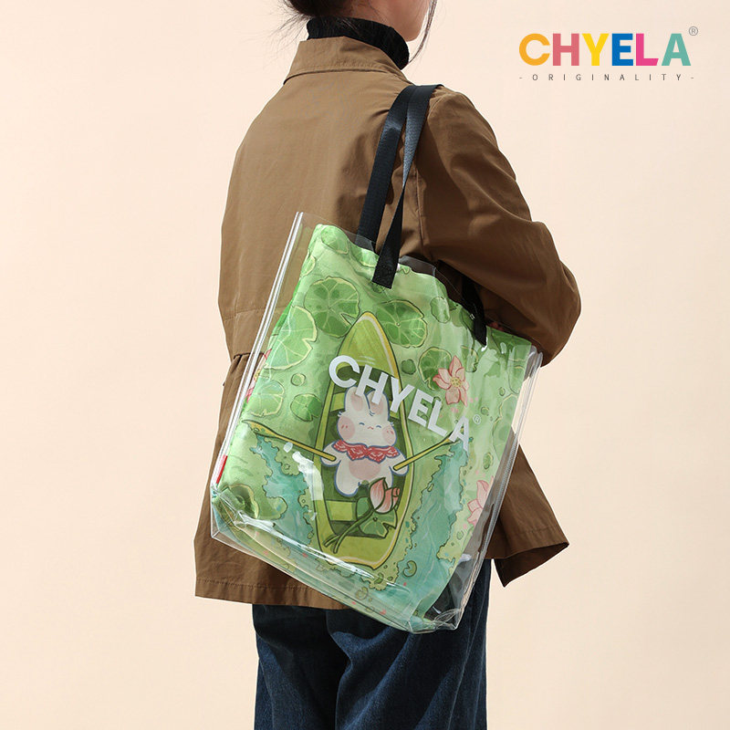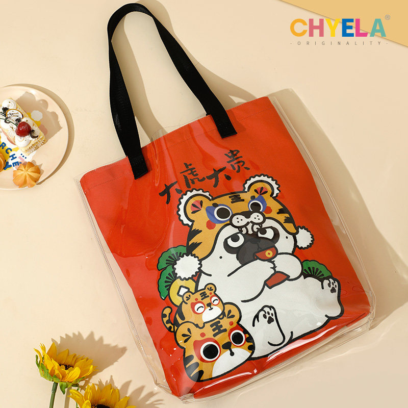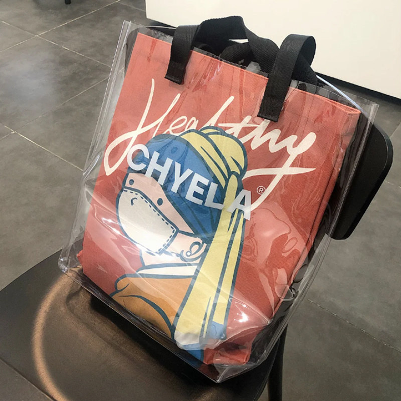 吾皇万睡 联名透明果冻帆布包大容量手提袋单肩防水小帆布袋AP485