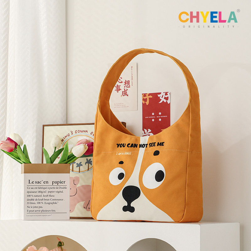 采绎来x木白可爱柯基大容量包包涂鸦表情帆布袋学生通勤单肩QT557