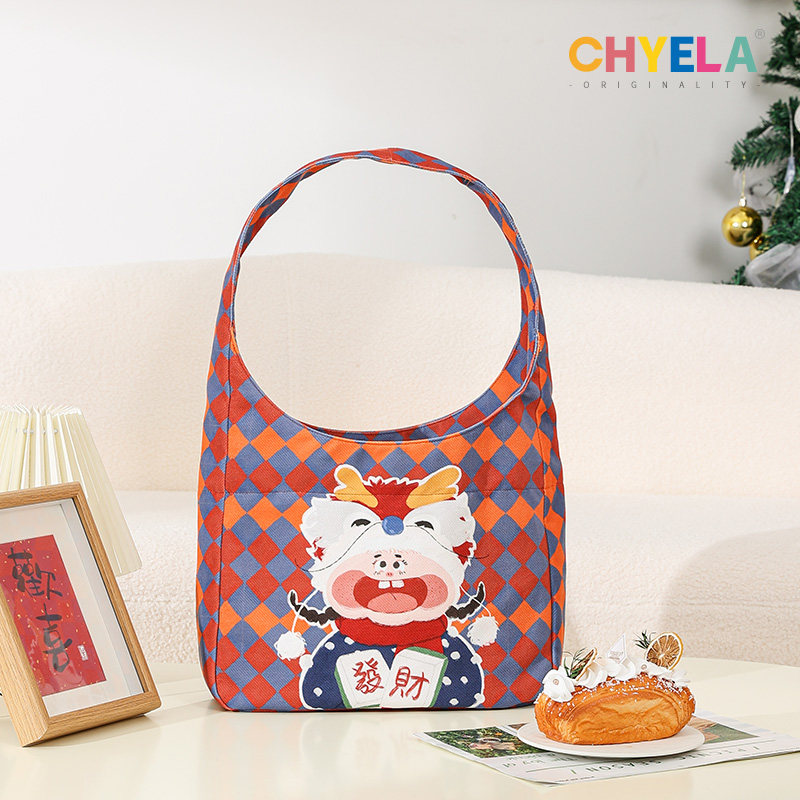 采绎来x傲娇小神龙原创可爱撞色单肩包龙年大容量托特包帆布QT531