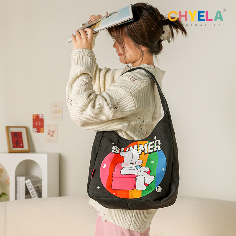 一年生 清新可爱小众设计百搭大容量腋下包通勤托特帆布包包QT179