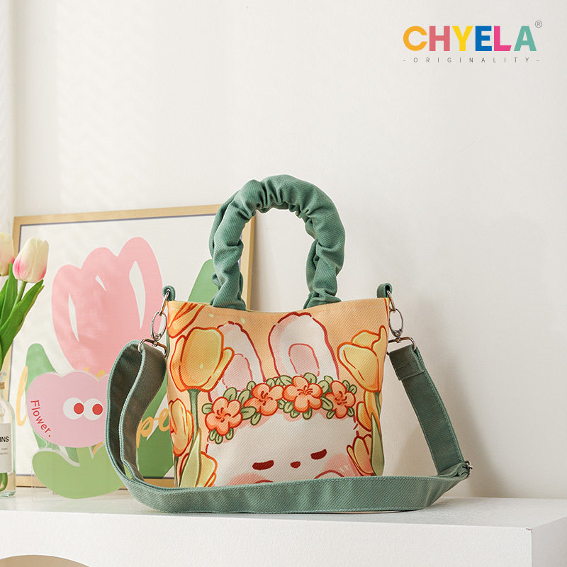 原创花园兔帆布包女小众设计可爱插画水桶包包斜挎包手拎小包AM81