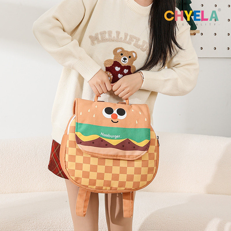 可爱汉堡包双肩包包ins卡通帆布双肩背包学生大容量休闲书包AC290