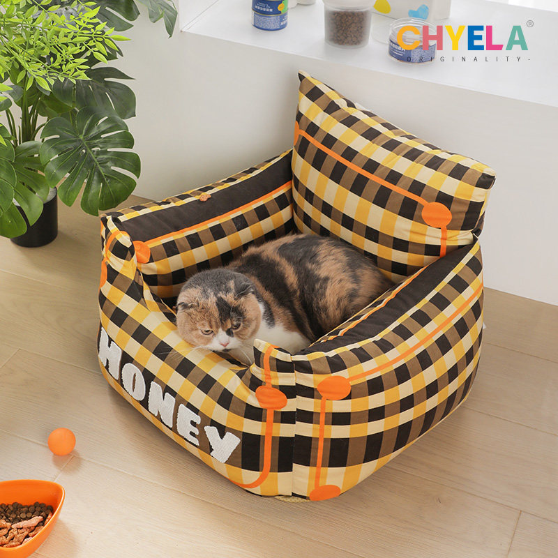 格纹宠物床保暖猫床四季通用可拆洗可爱沙发猫咪窝软绒垫AD148
