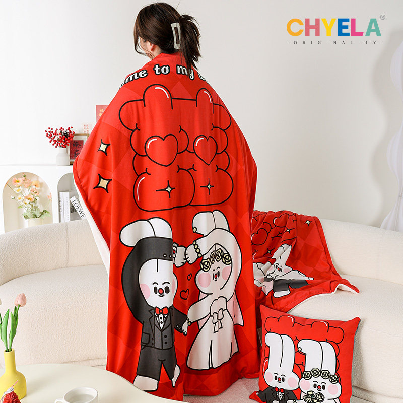 采绎来xKIKO 原创插画结婚红色沙发毯子新婚礼物送新人毛毯QT602