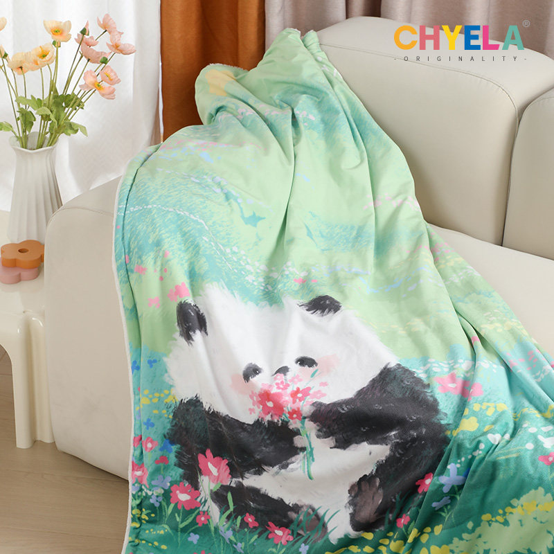 采绎来x大号小熊 熊猫花花毛毯奶油绒可爱保暖盖毯沙发毯QT287