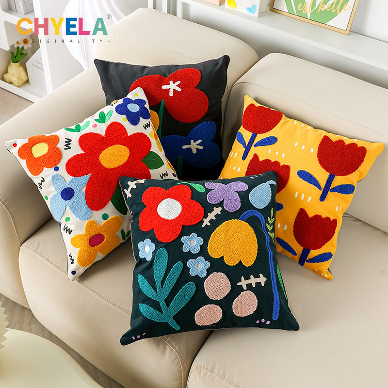 采绎来xSunshine 花朵抱枕套刺绣轻奢高级感客厅沙发靠背垫QT425