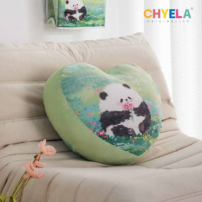 采绎来x大号小熊 熊猫花花爱心抱枕插画治愈沙发客厅靠垫QT267