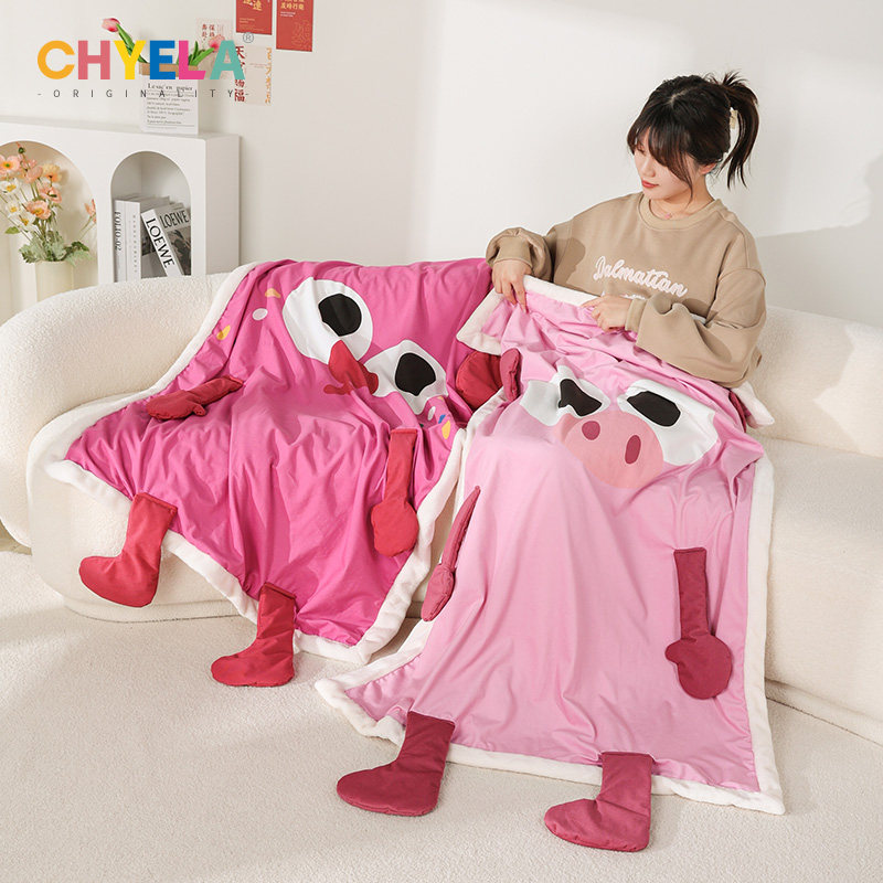 趣味动物羊羔绒毛毯 猪猪沙发盖毯办公室午睡毯被子加厚披肩AC276