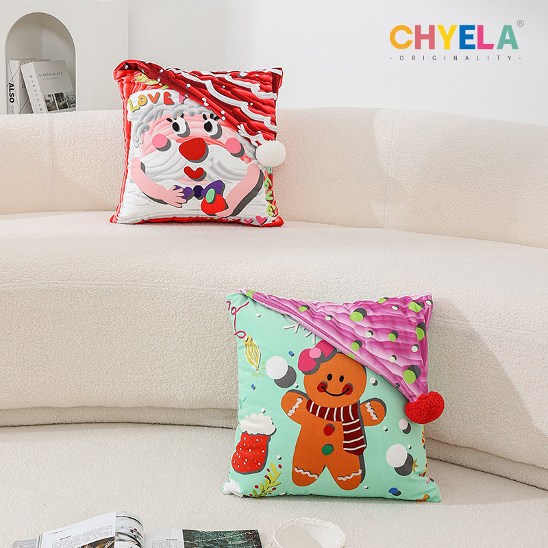 采绎来xCICI 圣诞帽老人抱枕创意节日装饰靠垫客厅沙发靠枕QT697