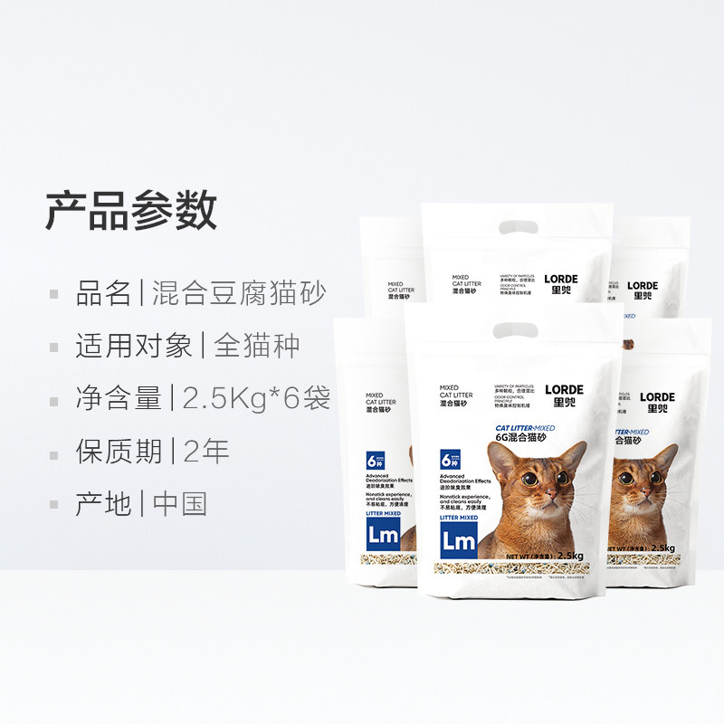 LORDE里兜升级6G豆腐膨润土混合猫砂2.5Kg*6袋猫沙除臭可冲厕