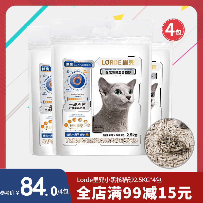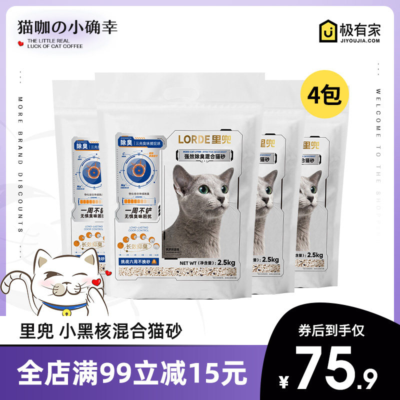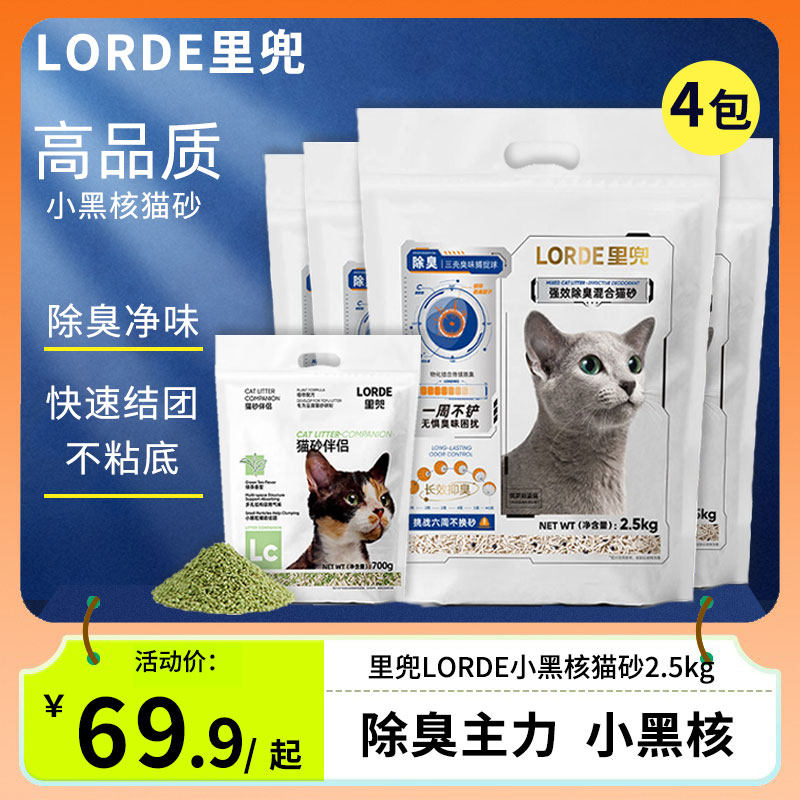 LORDE里兜猫砂升级小黑核2.5Kg膨润土豆腐混合猫砂除臭可冲厕4包