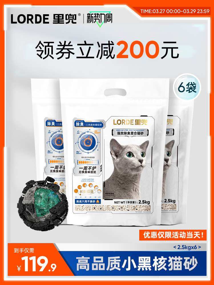 【天天低价】Lorde里兜小黑核强效除臭混合豆腐猫砂膨润土矿砂