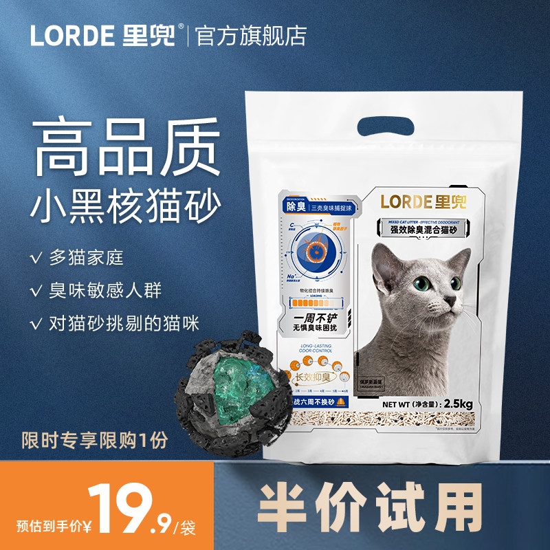 LORDE里兜小黑核猫砂 强效除臭膨润土混合猫沙低尘抑菌去味2.5kg