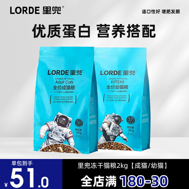 LORDE里兜猫粮成猫粮2kg4斤冻干猫粮成年猫粮幼猫粮全类增肥发腮