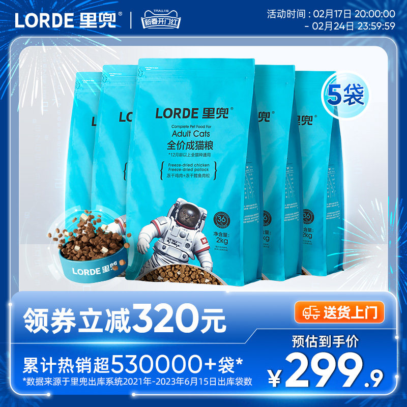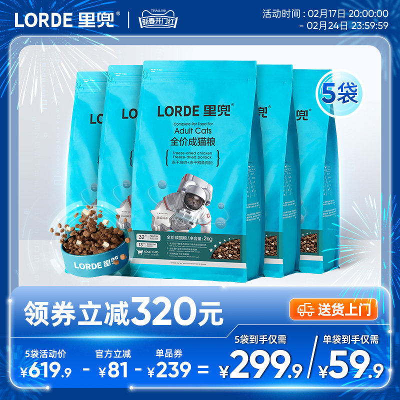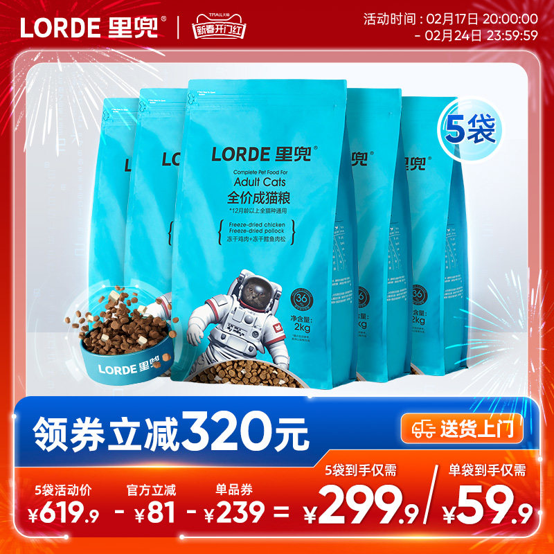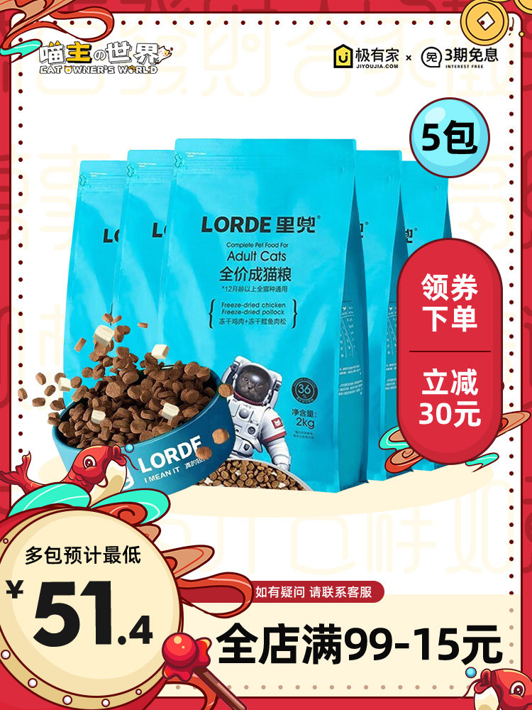 LORDE里兜猫粮成猫全价冻干鸡肉营养猫粮官方囤货猫粮5袋20斤