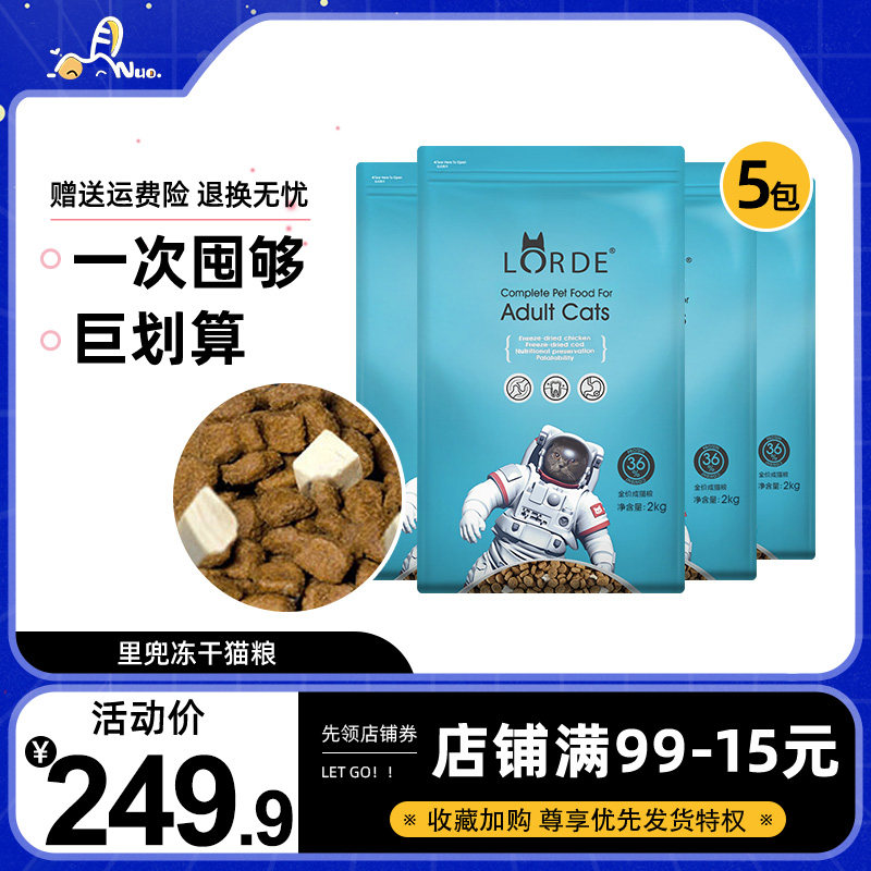 Lorde里兜猫粮冻干成猫粮天然粮2kg*5包进口鳕鱼宠物猫咪增肥发腮