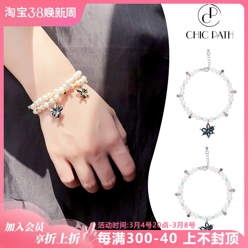 COCSIS设计师品牌春夏野兽派蝴蝶花珍珠挂坠手链女手工彩珐琅配饰