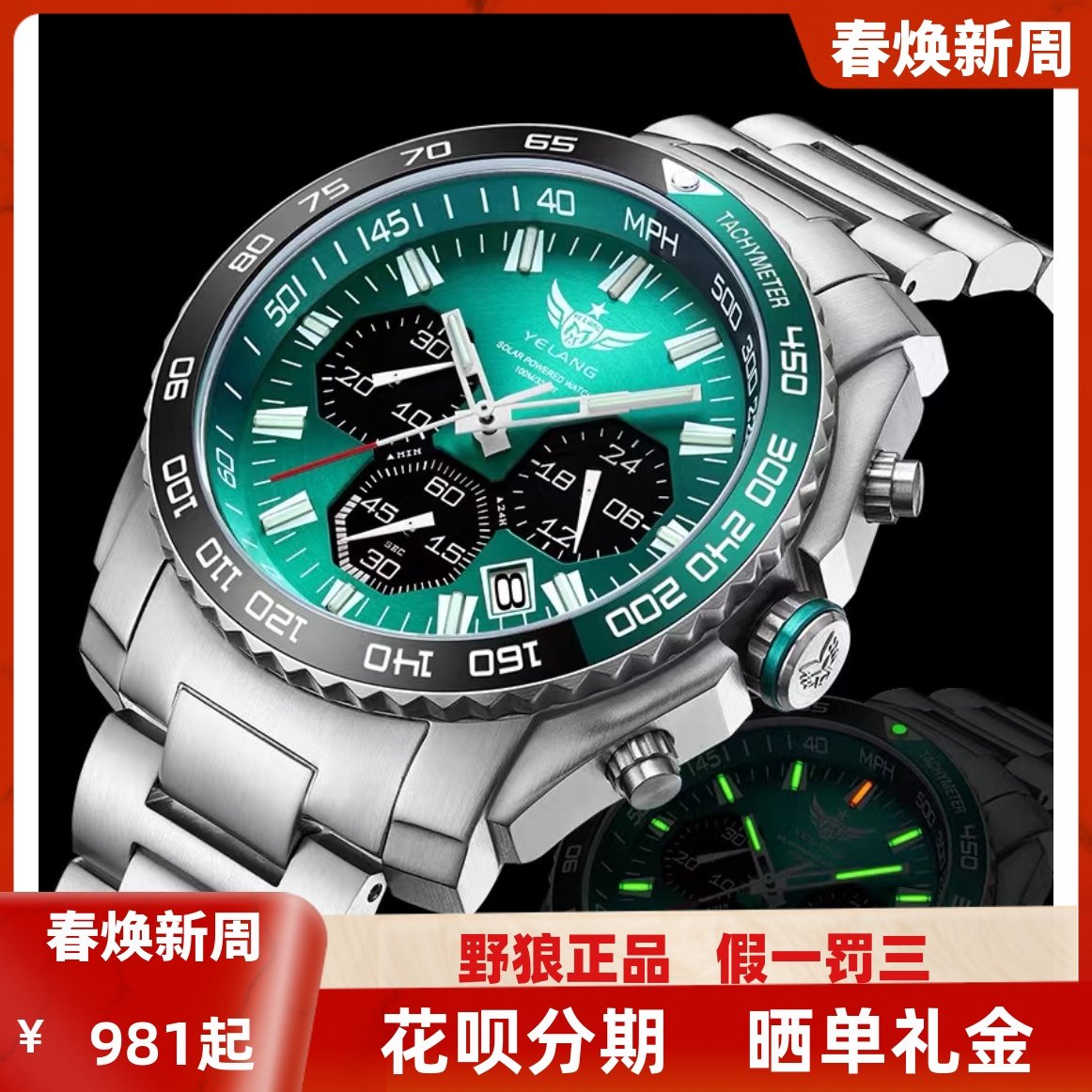野狼手表旗舰男士太阳能光能表运动手表夜光防水多功能计时男腕表