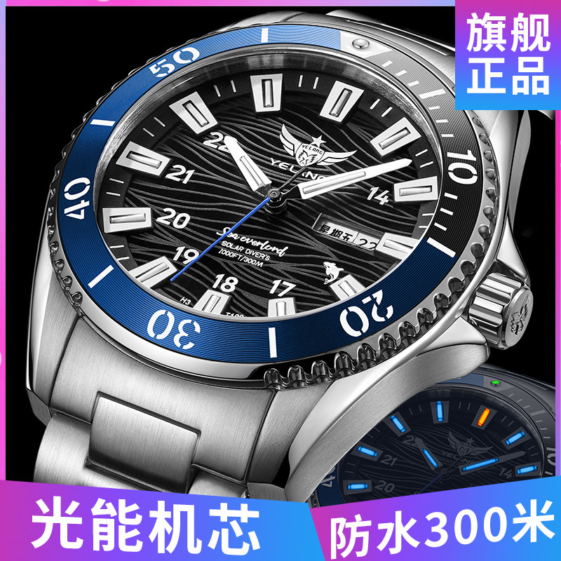 绿水鬼瑞士氚气夜光防水男表野狼太阳光能手表男士品牌运动潜水表