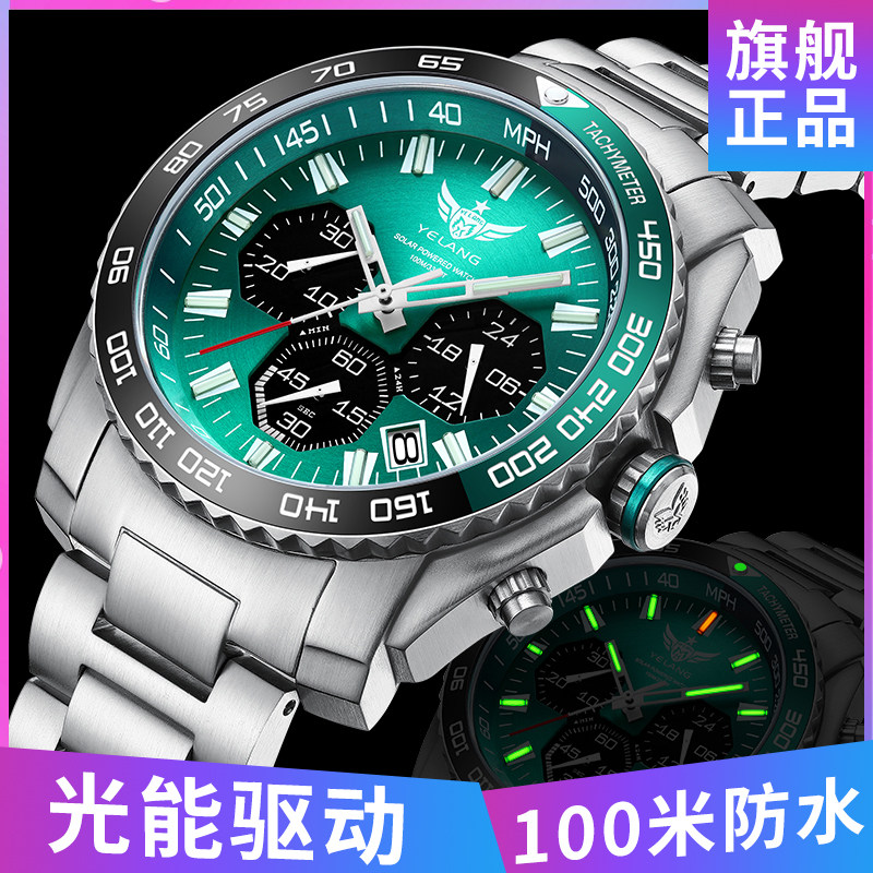 太阳能手表男士光能表运动瑞士氚气夜光石英表防水多功能表V1215