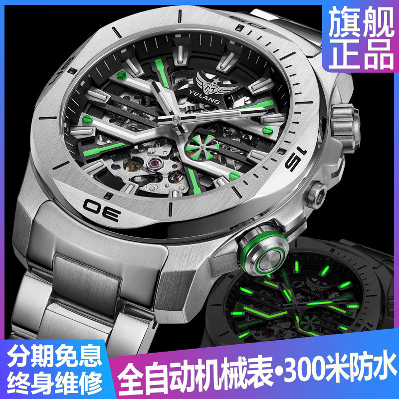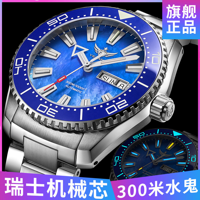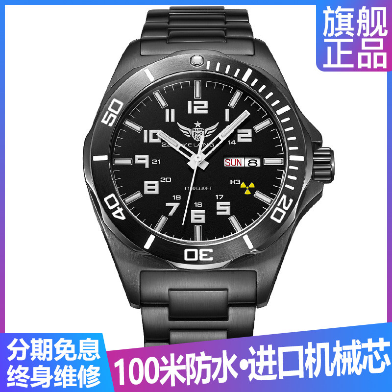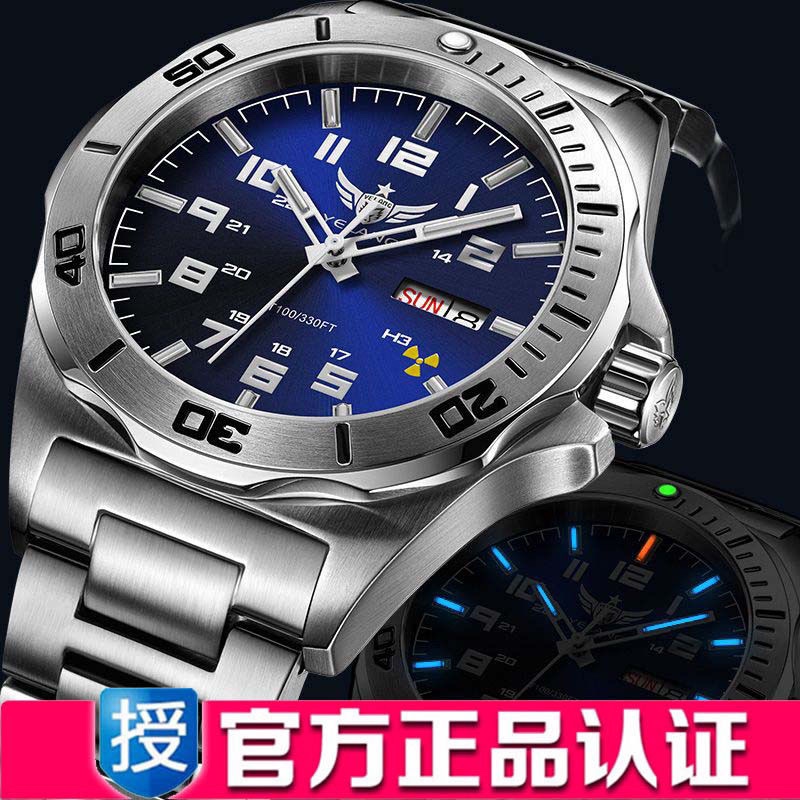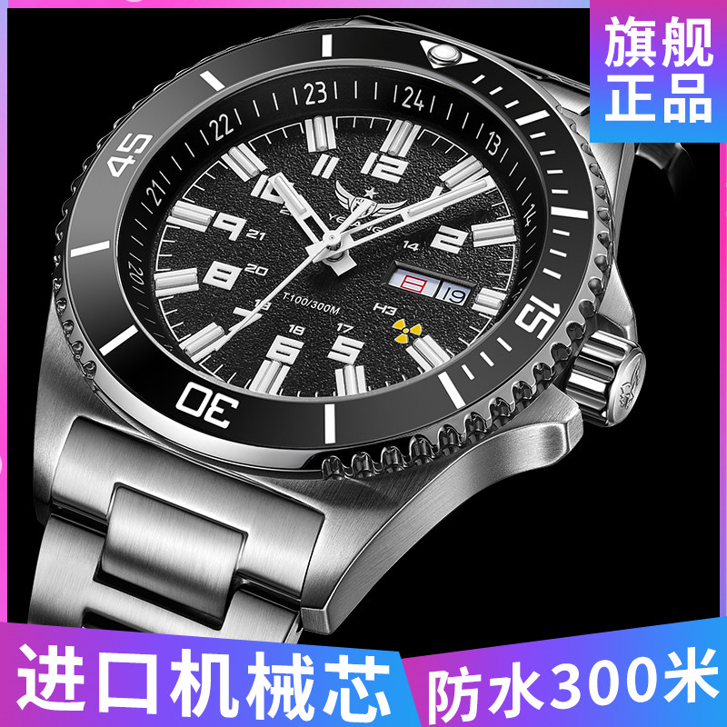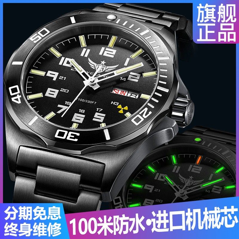 官方正品野狼手表旗舰300米防水全自动瑞士水鬼氚气机械表男品牌