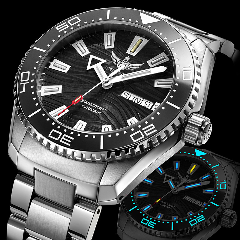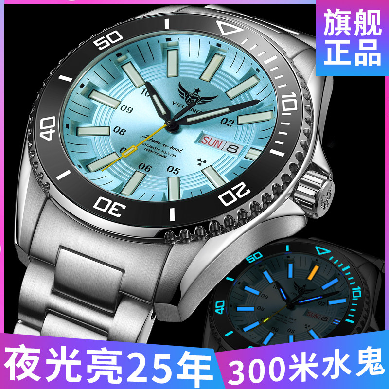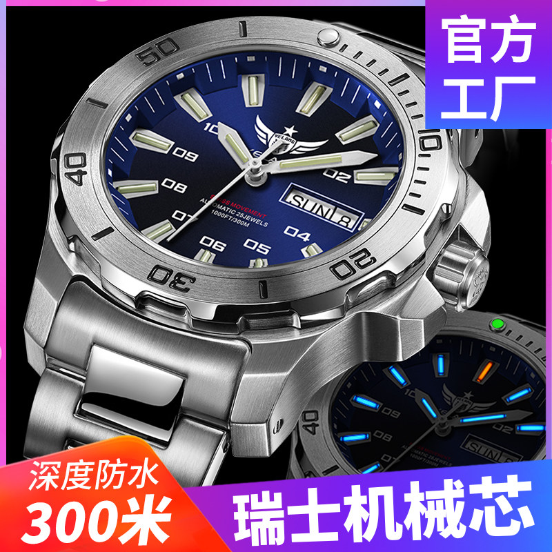300米防水正品瑞士自动上链机械芯 野狼手表水鬼机械表氚气灯夜光