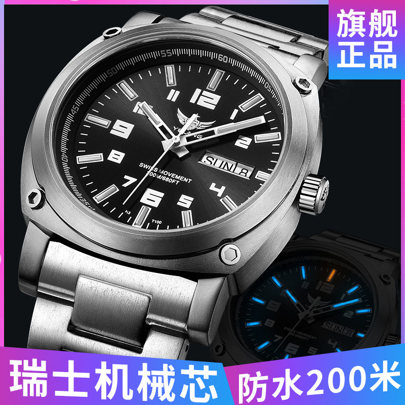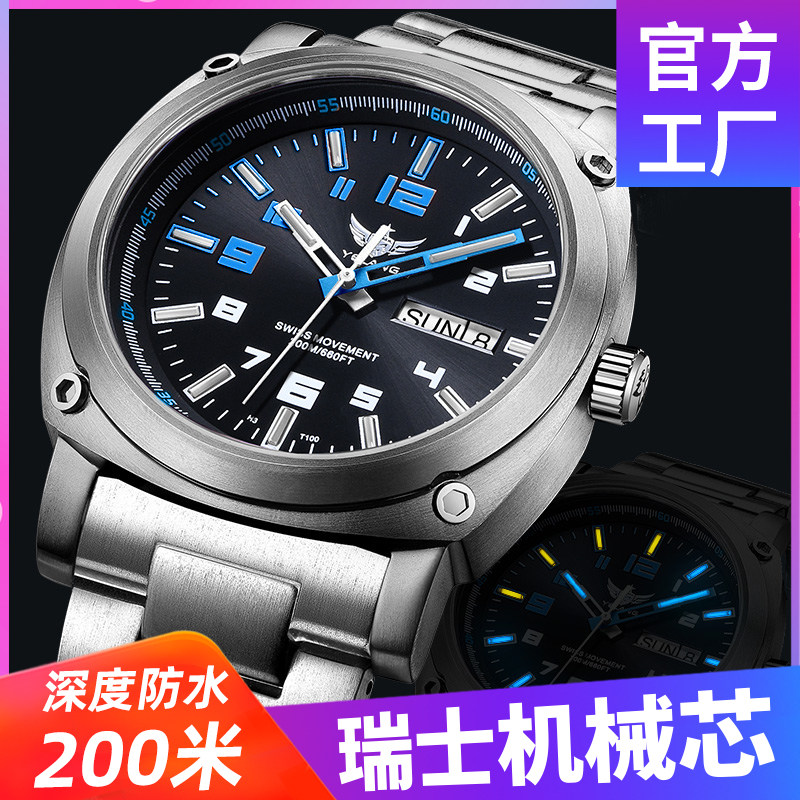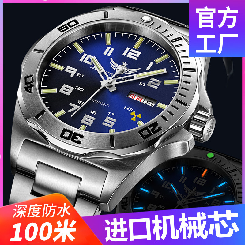 瑞士全自动机械机芯手表男表防水氚气夜光军机械表钛合金腕表V3.4