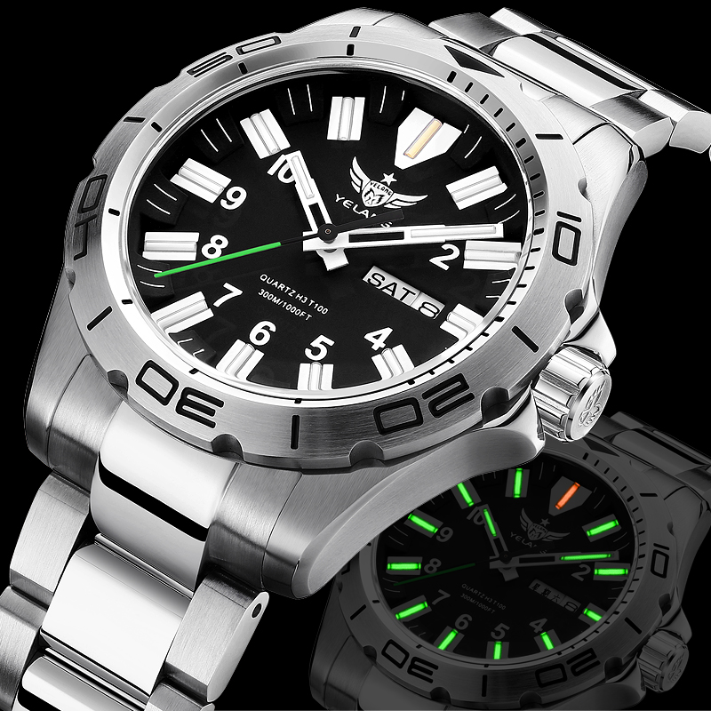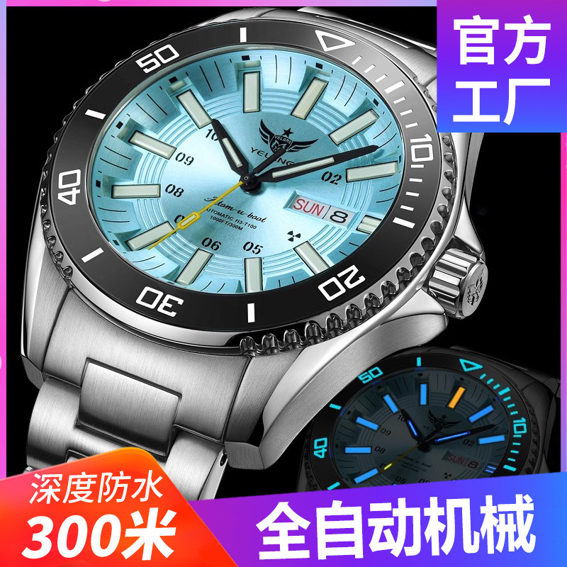 300米深潜水游泳全自动机械表 野狼手表十大名牌男表氚气瑞士水鬼