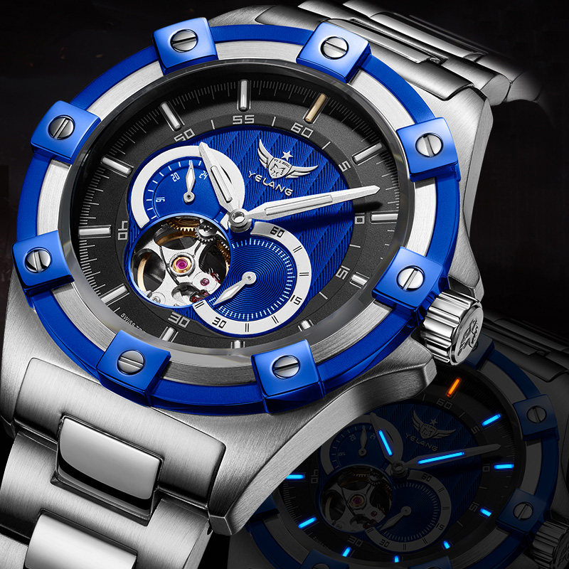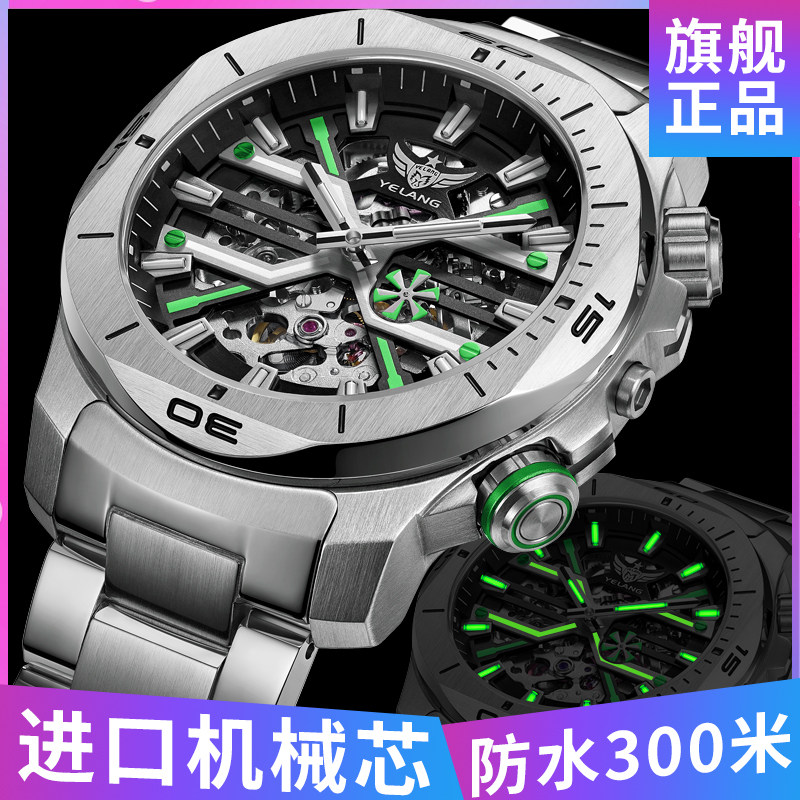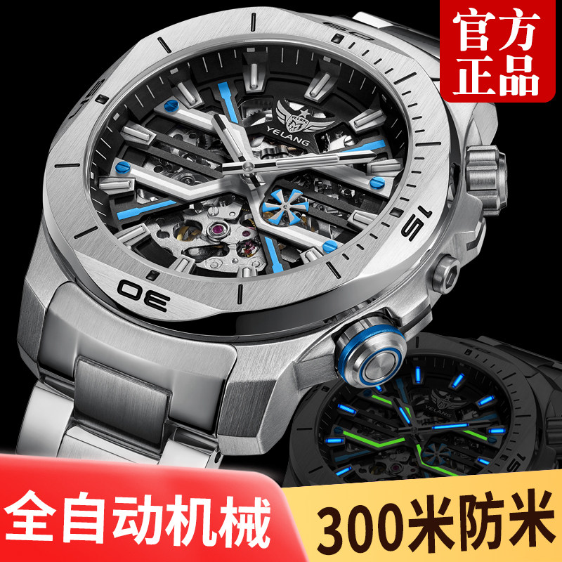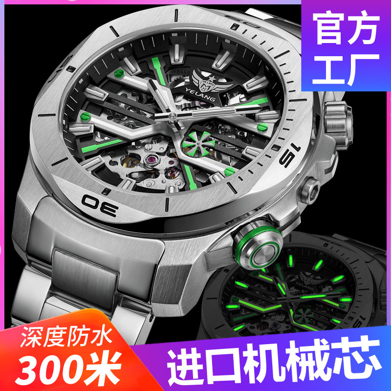 全镂空手表男全自动机械表瑞士氚气夜光潜水防水男士腕表潮V1034