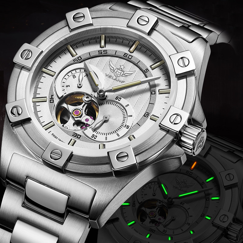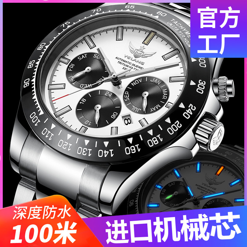 野狼瑞士机芯氚气自发光官方手表男士全自动机械表夜光防水V5.1