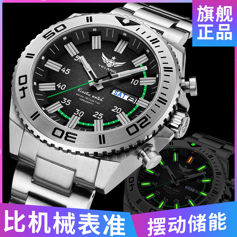 野狼手表绿水鬼王瑞士氚气夜光防水 比机械表准 人动能男表V1035