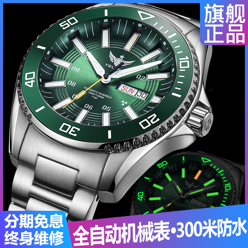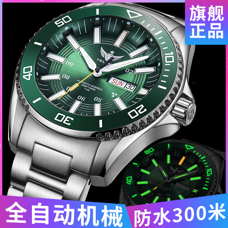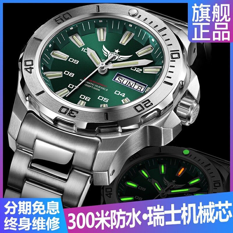 瑞士绿水鬼手表男机械表全自动自发夜光防水十大正品牌野狼旗舰店