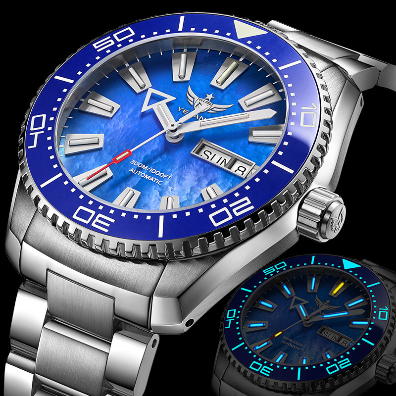 自发光25年氚气灯夜光野狼手表自动机械表男表防水蓝色星球送父亲