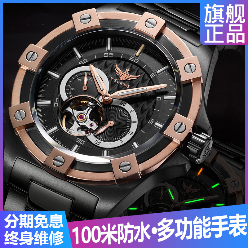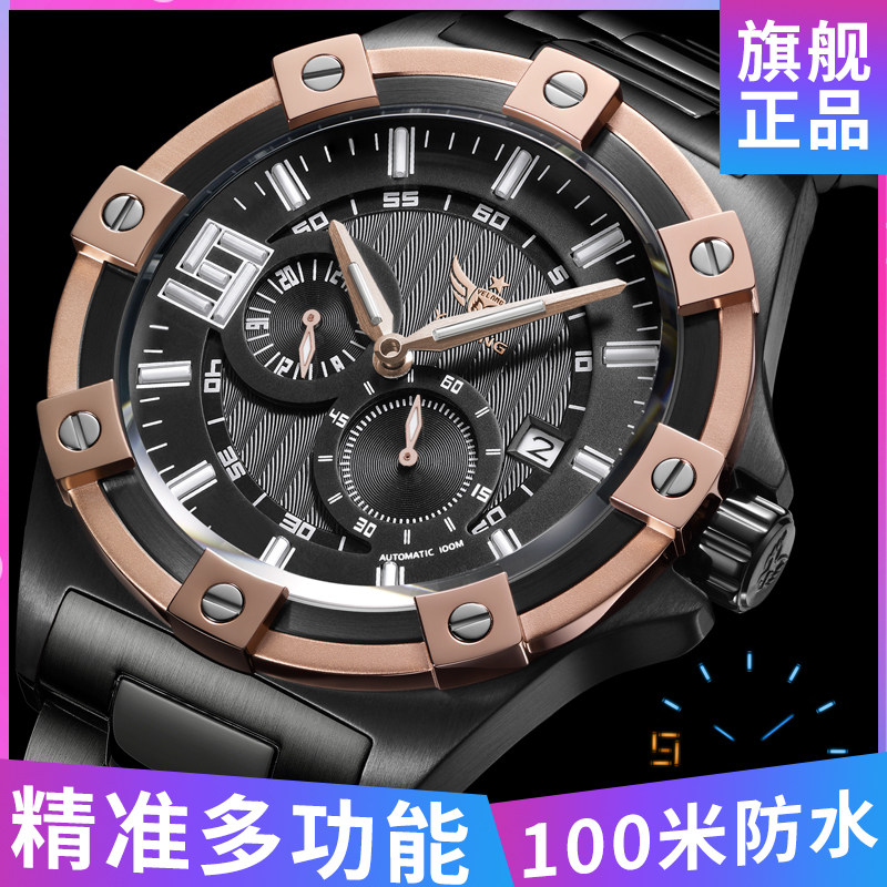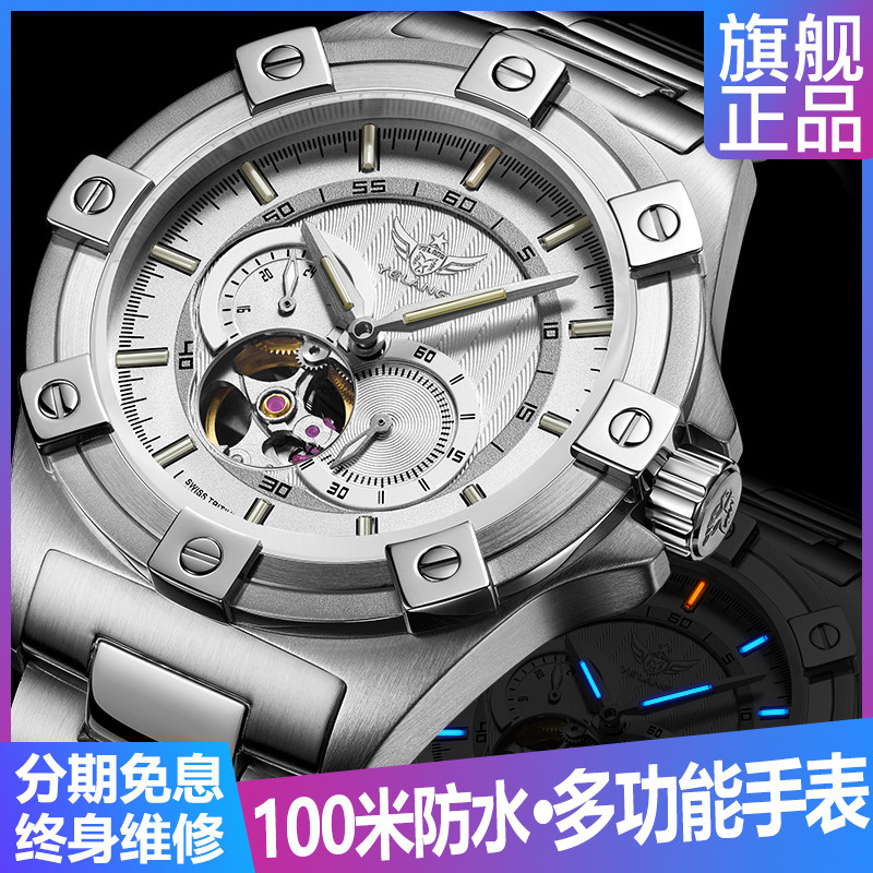 野狼手表旗舰全自动机械表男表防水游泳瑞士氚气夜光正品十大品牌