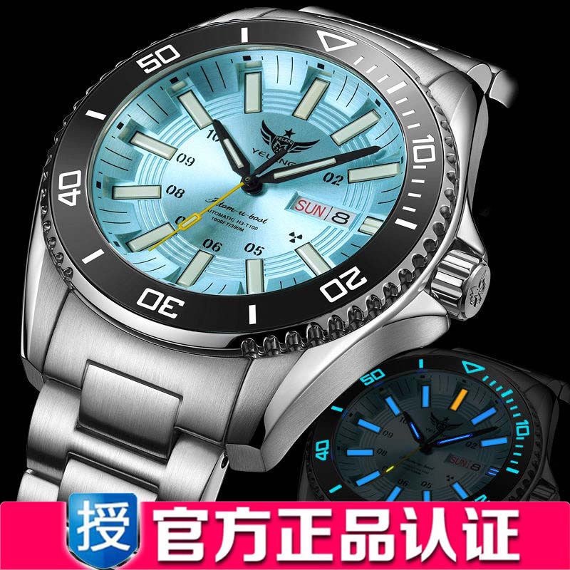 瑞士机芯氚气夜光全自动机械表男士蓝绿水鬼正品牌男野狼手表V5.1