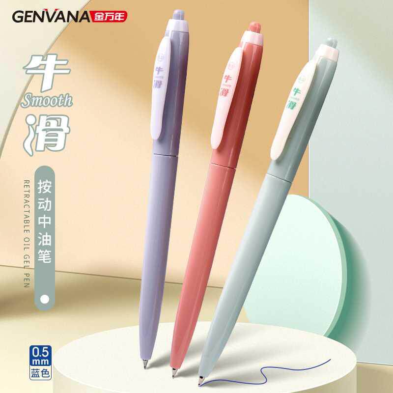 金万年牛滑按动圆珠笔0.5mm蓝色中油笔速干顺滑ST笔头按动笔小学