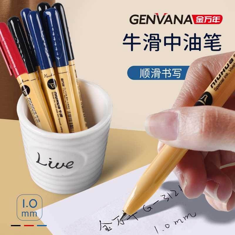 金万年油笔圆珠笔1.0mm牛滑中油笔粗头小学生专用黑色红色蓝色彩