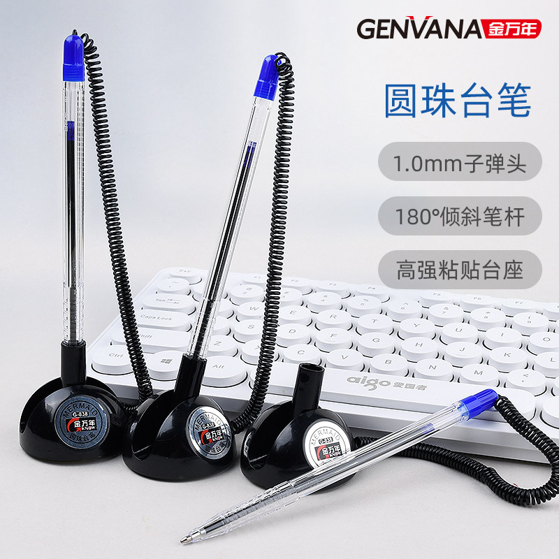 金万年台式圆珠笔固定台笔带线银行柜台前台笔防丢笔商务签字笔