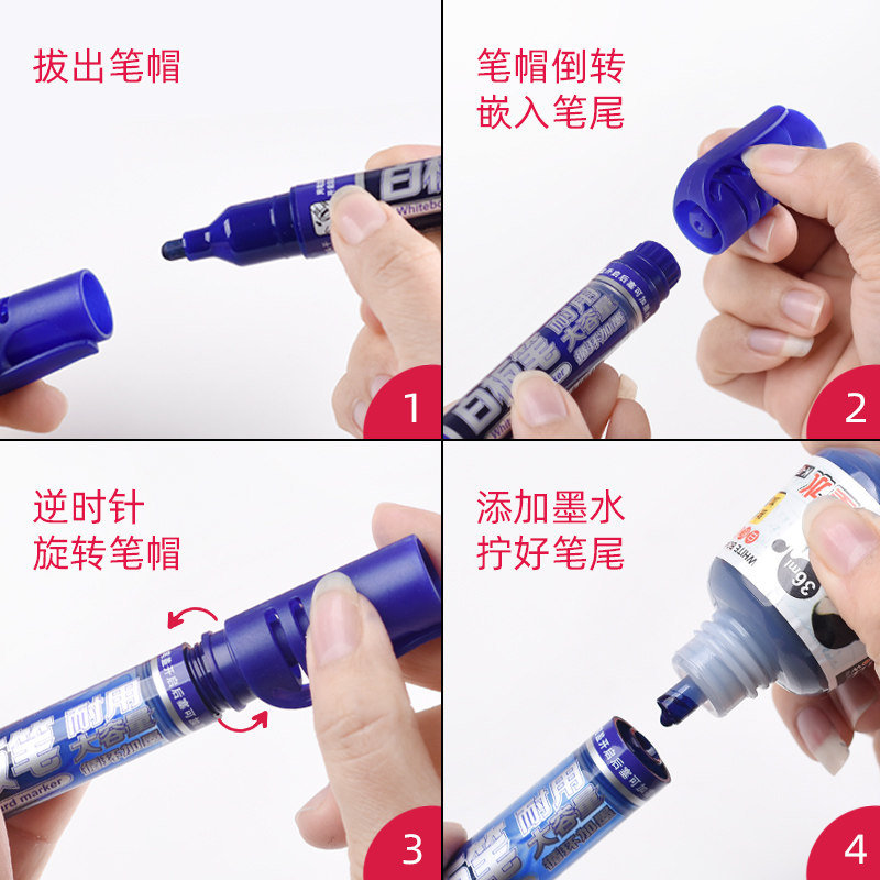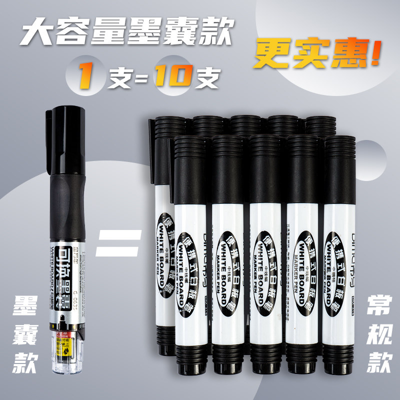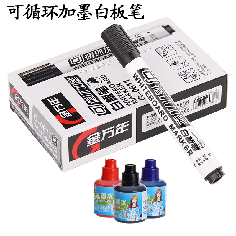 金万年白板笔可加墨水可擦大容量水性教师用可换墨囊墨胆黑色白黑
