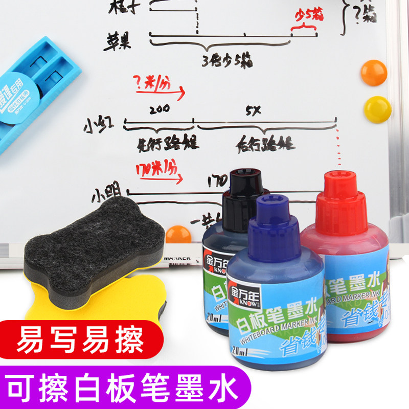 金万年白板笔墨水20ML可擦补充液红蓝黑色教学办公培训笔添加墨水