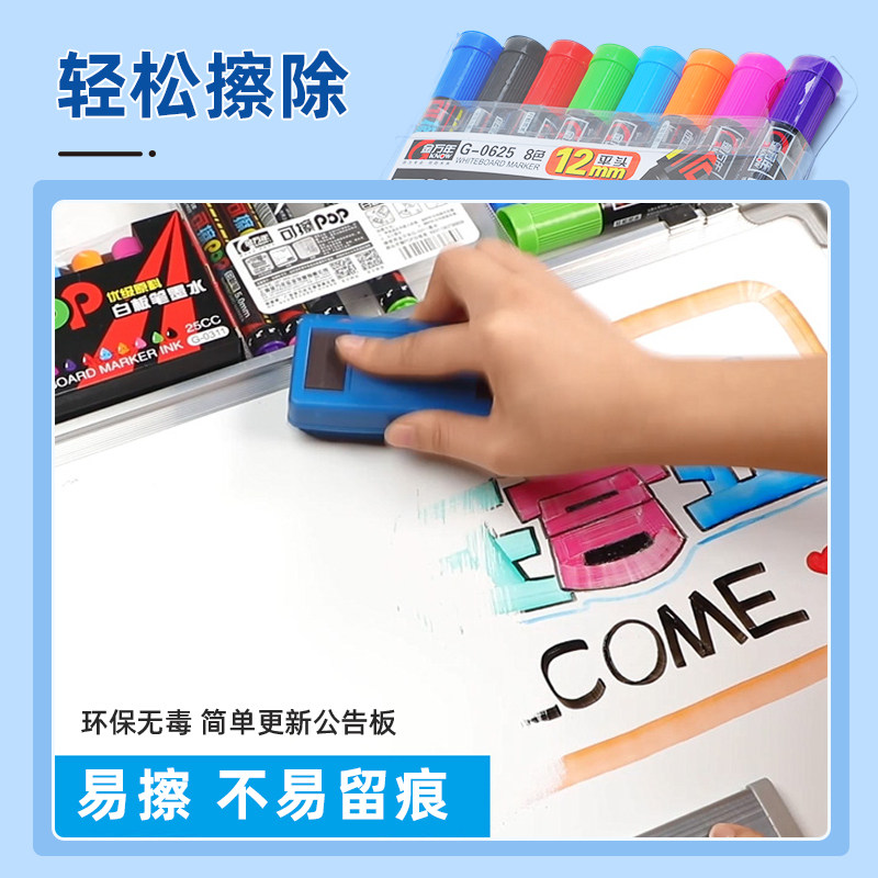 金万年彩色白板笔可擦粗头12mm加粗pop笔可加墨5mm平头水彩笔墨水