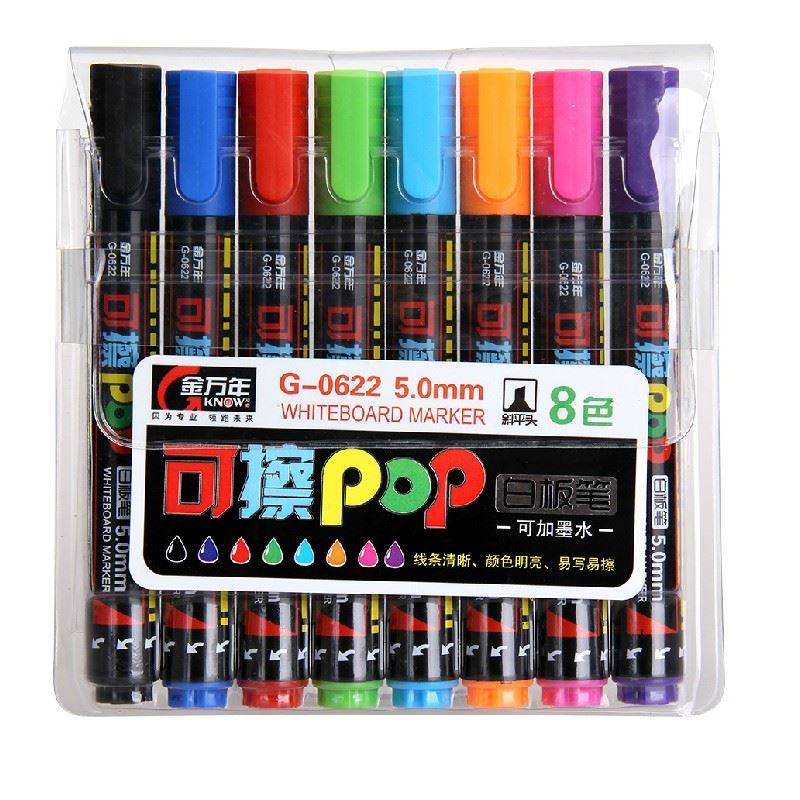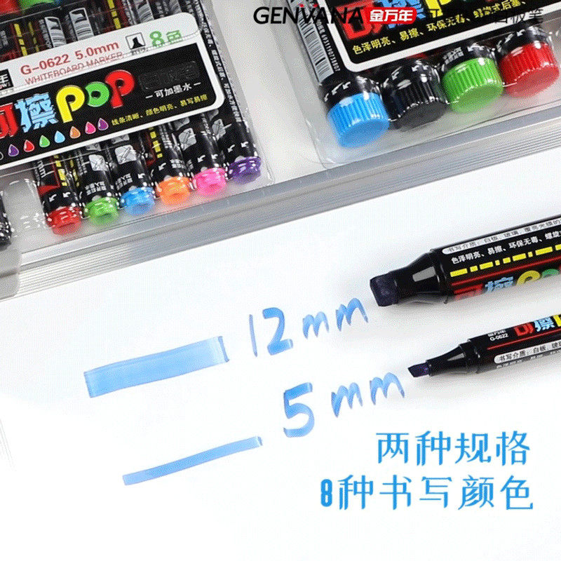 金万年8色白板笔套装可加墨水易擦彩色笔5mm斜头POP广告粗大容量